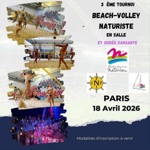 C’est le samedi 18 avril 2026 qu’aura lieu à la Sand Fabrik, à Pantin (93) en Ile de France, la troisième édition du tournoi de Beach-Volley Naturiste en salle, proposé par la FFN. Cette rencontre prévue de 10h à 17h sera suivie d’une soirée dansante naturiste jusque 23h30.